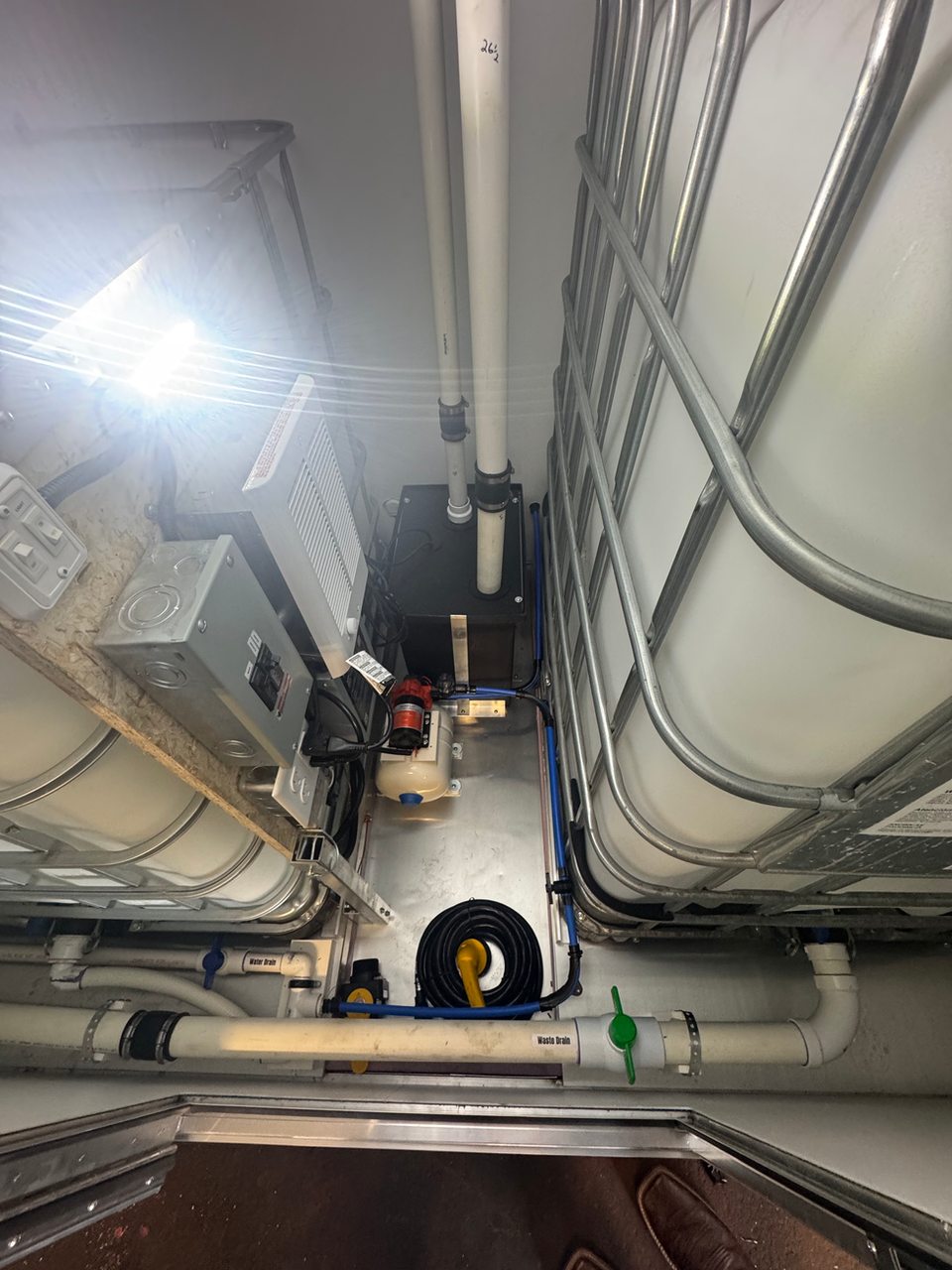 Fresh Water tank serves as reservoirs, tucked inside an insulated box mounted outside your trailer. Which is safely shielded from the elements. A water fill valve is on the outside of the box to allow easy fill for your drivers and has an overflow drain.